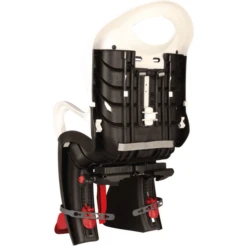 Het fietsstoeltje met dragerhouder heeft een ergonomische en in hoogte verstelbare rugleuning die zich aanpast aan de groei van uw kind. De schuine rugleuning met helmbehuizing biedt een betere ondersteuning voor de nek van het kind.