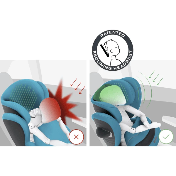 - Drievoudige kantelbare hoofdsteun voorkomt dat het hoofd van uw kind naar voren kantelt tijdens het slapen