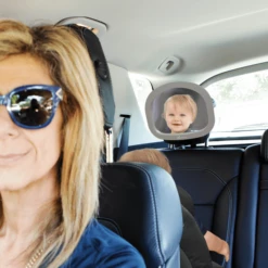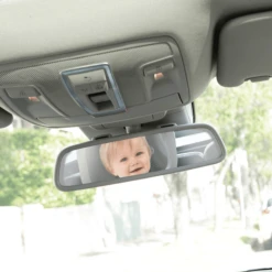 De EZY-Fit verstelbare achteruitkijkspiegel voor de auto heeft een grote breedtespiegel waarmee u uw kind in een achterwaarts gericht autostoeltje goed kunt zien.