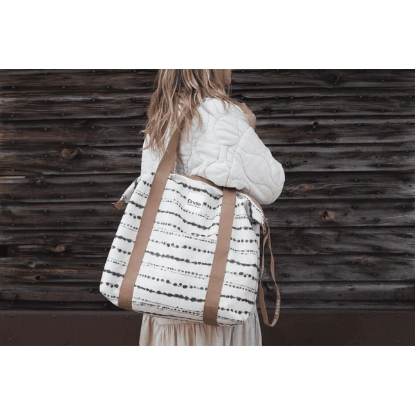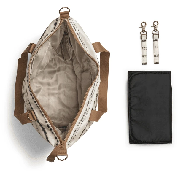 - Elke tas wordt geleverd met een aankleedkussen en riempjes om de tas aan de duwstang van de kinderwagen te bevestigen.