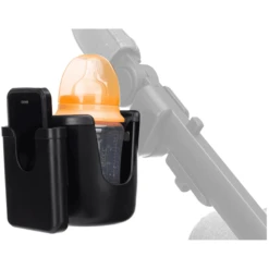 Deze universele flessenhouder met extra vak voor Smartphone is de perfecte metgezel voor onderweg. Hij is geschikt voor alle kinderwagens en buggy’s en kan gemakkelijk met een stelschroef worden bevestigd.