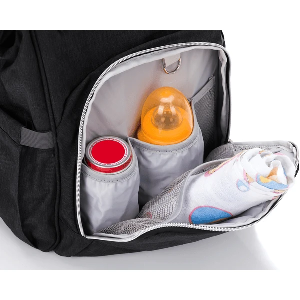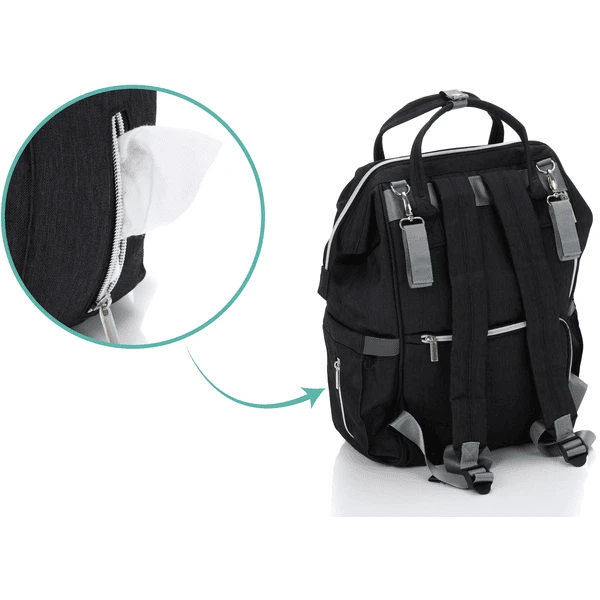 Dankzij de vele binnen- en buitencompartimenten blijkt de wrap-around rugzak een echt opbergwonder te zijn. De zakopening van de dokter maakt het gemakkelijk om de inhoud op te bergen, zodat u de inhoud in één oogopslag kunt zien en u zich het gedoe van het zoeken kunt besparen. Of u hem nu sportief over uw schouder draagt of gewoon op de kinderwagen monteert – de rugzak past zich flexibel aan uw wensen aan. Voor de bevestiging aan de kinderwagen worden twee haken meegeleverd. Een uitneembare aankleedkussen is ook inbegrepen. Dit maakt het verschonen van luiers onderweg kinderspel, want het opvouwbare verschoonmatje is altijd klaar voor gebruik.