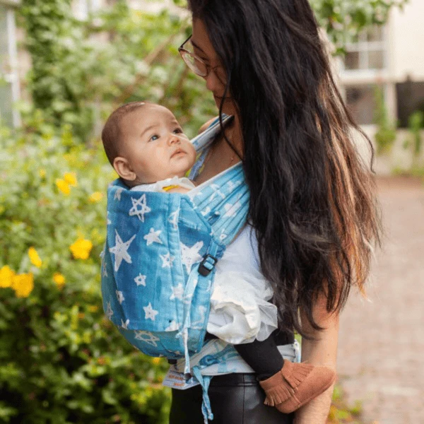 Hoppediz Babydraagzak Hop-Tye Buckle Jacquard Singapore Blue