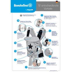 - Door het gebruiksgemak en het geoptimaliseerde ontwerp van BONDOLINO® spreekt hij ouders aan, die een draagdoek te ingewikkeld en/of te alternatief vinden.