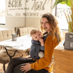 - Door zijn brede en gevoerde band, past de BONDOLINO® zich optimaal aan de schouder en nek aan. Hij biedt optimaal draagcomfort, zonder te drukken en te snijden en is ontlastend voor de rug – ook bij zwaardere baby’s en langer dragen.