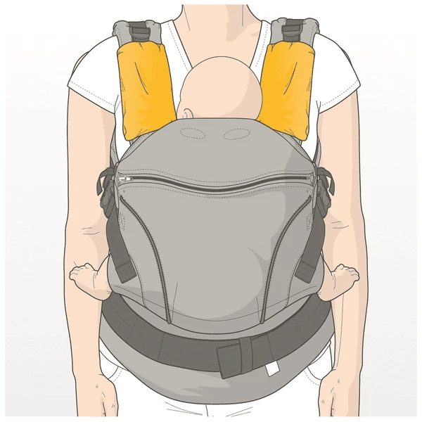 - Aan te passen aan elk standaard harnassysteem, of het nu een autostoeltje of een draagzak is